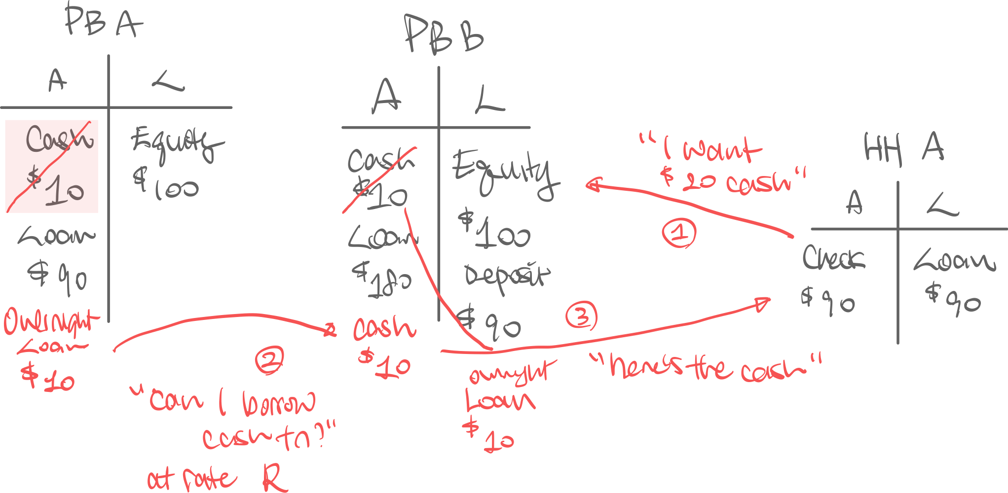 - PBB doesn’t have enough cash on hand, so goes to PBA and asks “can I borrow R$?”