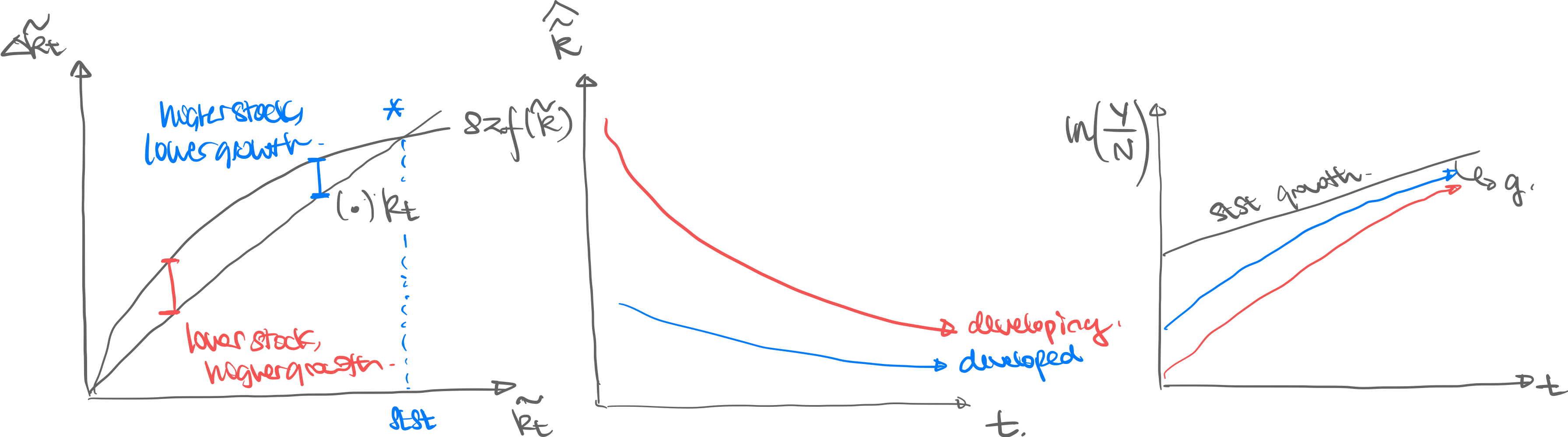 - Explains why per capita GDP converges to a certain point (intersection point in right graph)